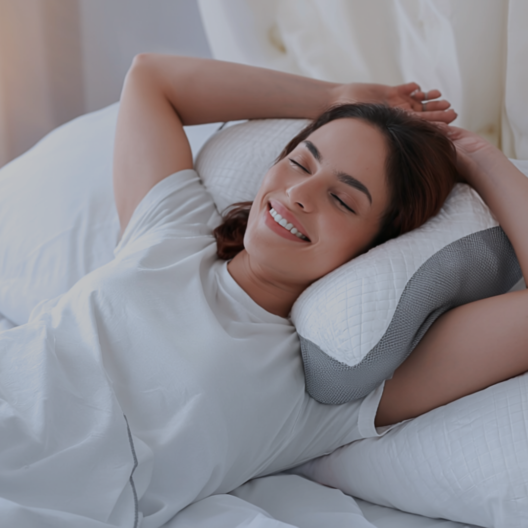 L'oreiller ergonomique Somelle™ maintient l'alignement parfait de votre colonne cervicale, réduisant les tensions qui causent maux de tête et migraines matinales.